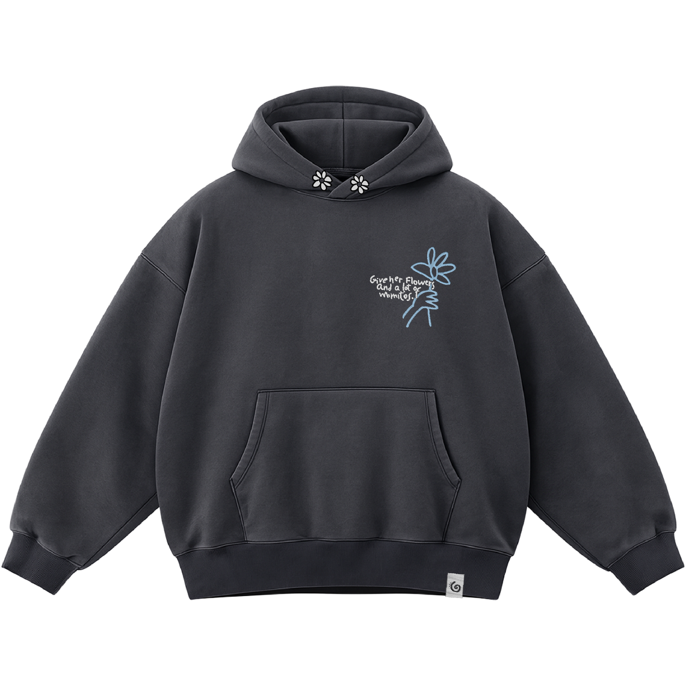Con 350g de puro algodón, textos bordados, buen rollo y la forma oversize que todos buscamos en una sudadera; hemos creado para ti la perfecta, la indicada, tu media naranja. Eso sí, las flores y los mimitos los das tú.
