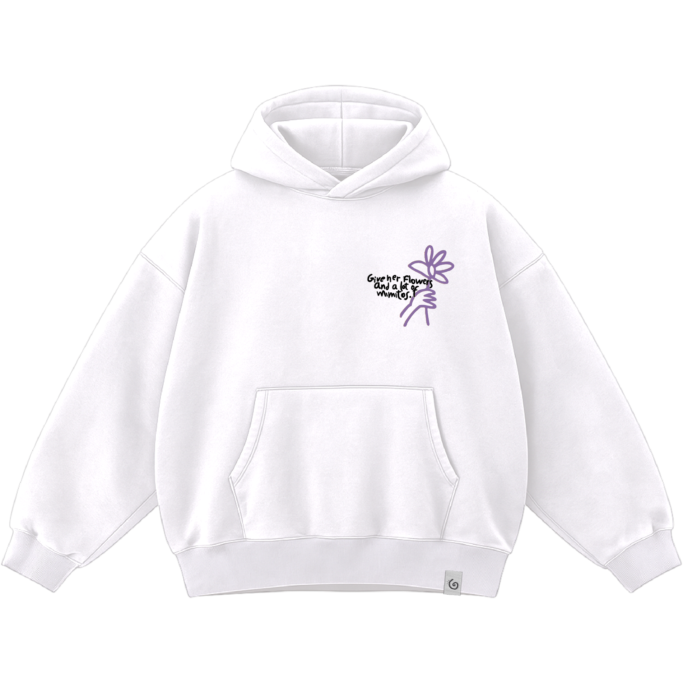 Con 350g de puro algodón, textos bordados, tintas hinchables, buen rollo y la forma oversize que todos buscamos en una sudadera; hemos creado para ti la perfecta, la indicada, tu media naranja. Eso sí, las flores y los mimitos los das tú.